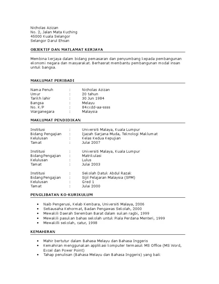 Contoh resume terbaik format lengkap untuk mohon kerja. March 18, 2021 kerjaya, resume.